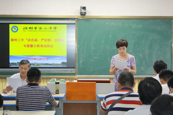我校将以本次专题警示教育活动为契机,教育引导学校党员干部和教师强化忠诚意识,严守纪律规矩,树立良好政德,不断增强自我净化,自我完善,自我革新,为共同谱写滁州二中发展新篇章提供重要保障。