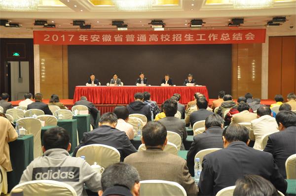 为深入贯彻党的十九大精神,认真总结全省普通高校招生考试工作成效和经验,全面部署和推进招生考试工作,深化考试招生制度改革,10月31日,我省在合肥召开2017年普通高校招生工作总结会。省委教育工委副书记庆承松出席会议并讲话,省委教育工委委员、省纪委驻省教育厅纪检组组长王光虎就教育招生考试纪检监察工作进行了部署。省教育招生考试院院长邸建伟代表考试院作工作报告。各市、省直管县教育局分管负责同志及招生考试机构负责同志,24所省属高校招生部门负责同志及省考试院有关处室同志参加会议。